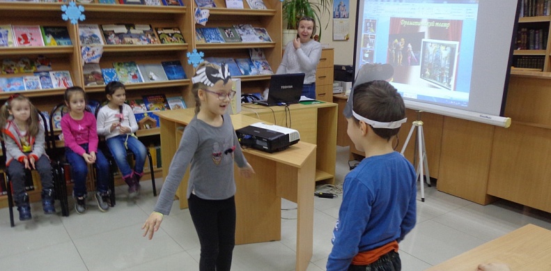«Здравствуй театр!», так назывался час искусства, в ходе которого ведущая рассказала о появлении театра в Древней Греции, первых театральных представлениях. Маленькие читатели узнали о разных видах театра: кукольном, драматическом, театре теней. Приняли участие в показе сценки по рассказу Н. Сладкова «Сорока и Медведь». В роли Сороки выступила Лилия Бондаренко, роль Медведя исполнял Денис Грибанов. Ребята были настоящими артистами и заслужили бурные аплодисменты.