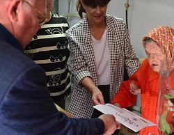 Со 100-летним юбилеем труженицу тыла и ветерана труда Бевз Раису Ивановну торжественно поздравили глава города Славянска-на-Кубани Александр Берсенев, председатель районной организации ветеранов Вячеслав Салмин, председатель первичной организации центрального округа Людмила Дубко, председатель ТОС Ольга Васильченко.