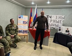С приветственным словом к присутствующим обратился председатель армянского общества культуры и милосердия им. В.О. Папазяна Мелтонян А.Ю. Также выступили участники военной операции Шлыков В.В. и Окунев С.А.