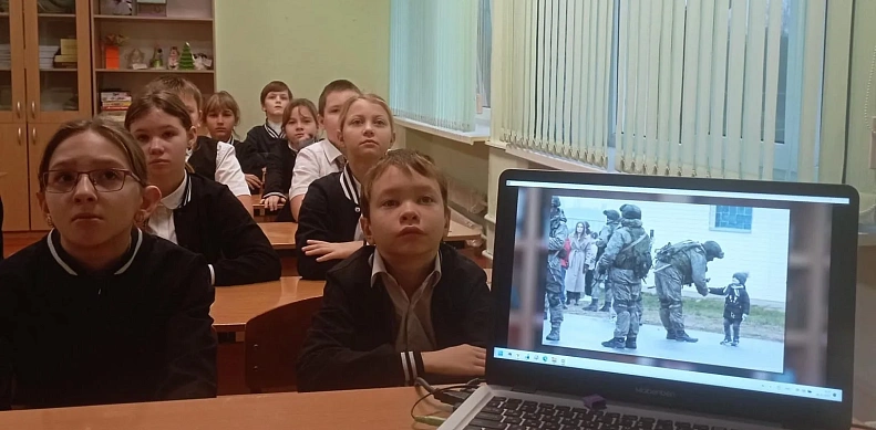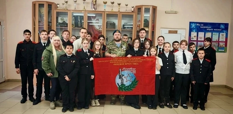 В школе № 7 пос. Степного состоялась встреча учащихся с участником СВО Бестужевым Олегом Николаевичем.