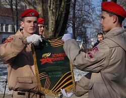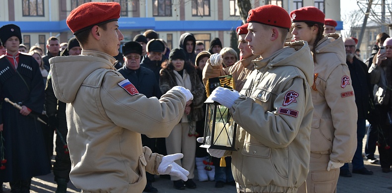 Воспитанники Всероссийского военно-патриотического общественного движения Славянского отделения «Юнармия» передали лампаду с негаснущим огнем Памяти воспитанникам Красноармейского отделения «Юнармия».