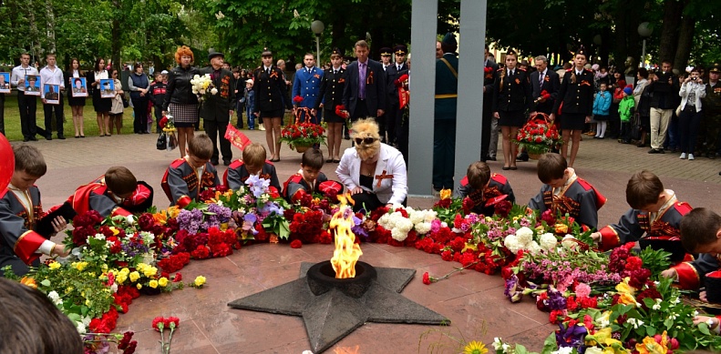 Под торжественный марш духового оркестра школьники вынесли на площадь семнадцатиметровую георгиевскую ленту, ставшую символом, который не дает забыть новым поколениям, кто и какой ценой выиграл самую страшную войну прошлого века. А в свете последних политических событий еще и объединившим всех, кто борется против поднимающего голову фашизма