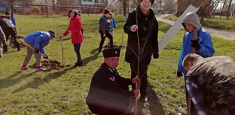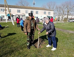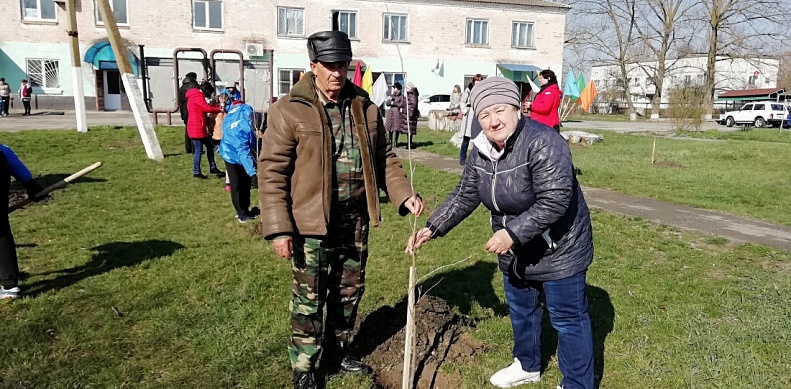 Право высадить первое дерево предоставили председателю Совета ветеранов Целинного сельского поселения Ольге Валентиновне Ларионовой и атаману Сладковского казачьего хуторского общества Петру Николаевичу Дмитриеву.