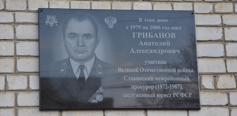 Анатолий Александрович является настоящей легендой профессии. Юристом он стал только в 36 лет, до этого отдав 15 лет службе в Вооруженных силах СССР. Проработав 8 лет следователем, Грибанов три конституционных срока трудился на высоком и ответственном посту Славянского межрайонного прокурора. Трудно переоценить вклад Анатолия Александровича в становление и развитие прокурорского надзора в Славянском районе, достаточно сказать, что за свой профессионализм он был удостоен почетного звания Заслуженный юрист РСФСР, награжден Почетной грамотой Президиума Верховного Совета РСФСР и семнадцатью поощрениями прокуратуры Краснодарского края. Не стало Анатолия Александровича 9 марта 2000 года и сегодня мы отдаем дань памяти и уважения человеку, на которого равняется сегодняшнее поколение служителей закона.