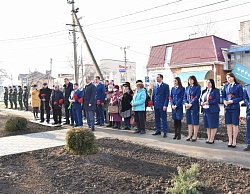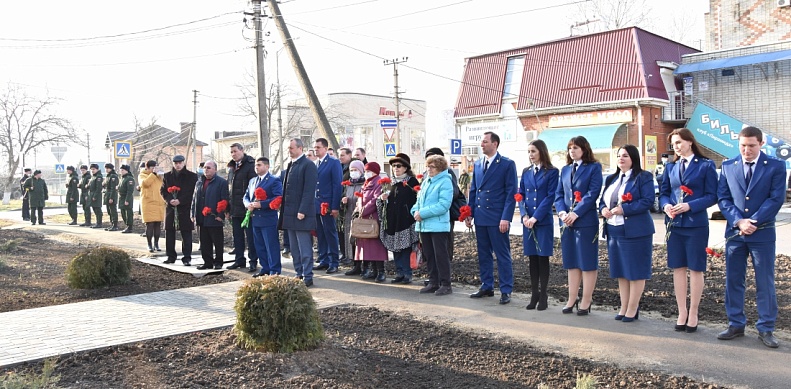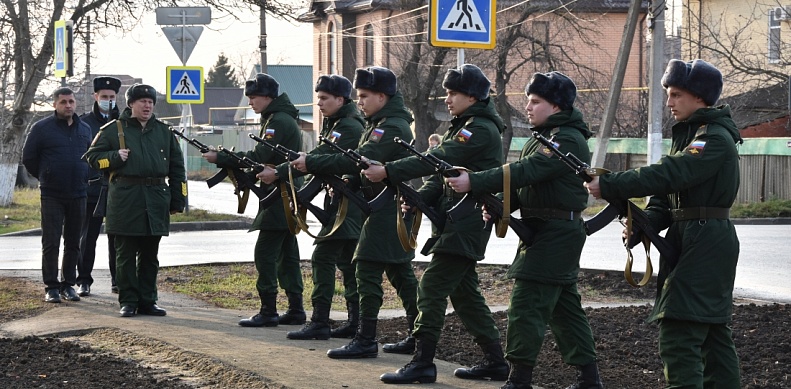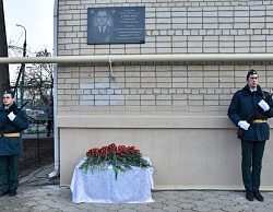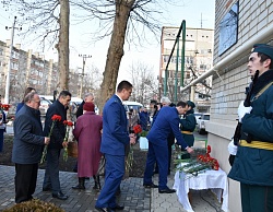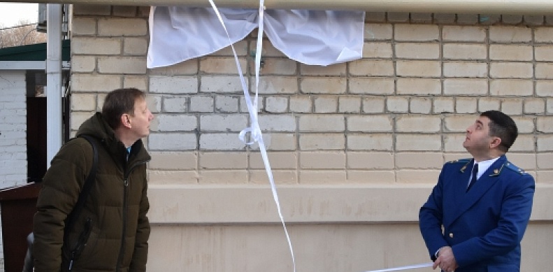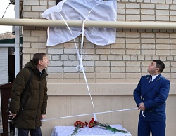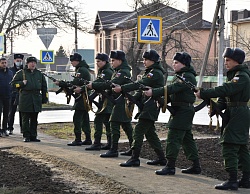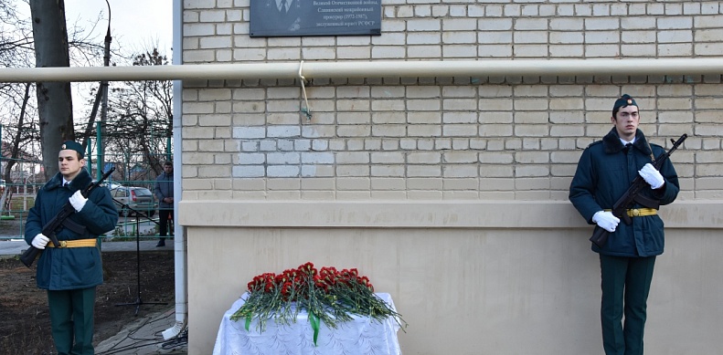 Почетные гости сняли ткань с мемориальной доски, в это время военное подразделение произвело трехкратный залп холостыми патронами.