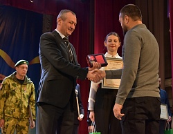 По инициативе всероссийского общественного движения боевого братства разработана и утверждена почетная награда - Орденский Знак Звезды, которую вручили в этот день нашему земляку Александру Попову. Александр Владимирович участвовал в боевых действиях на территории Северного Кавказа и Чеченской республики.