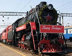 Ретропоезд сформирован из исторического подвижного состава времен Великой Отечественной войны. В этом году его традиционно ведут паровозы Эр 739-99 и ФД-20, которые работали во времена Великой Отечественной войны. В состав включены вагоны теплушки, вагон душ и вагон-салон. Вся техника из экспозиции музея железнодорожной техники СКЖД.