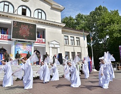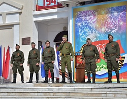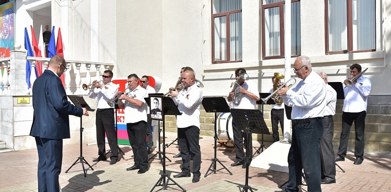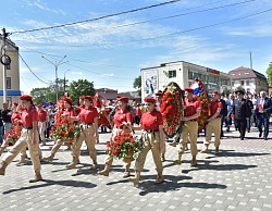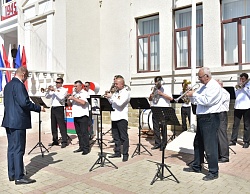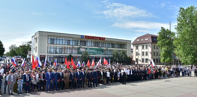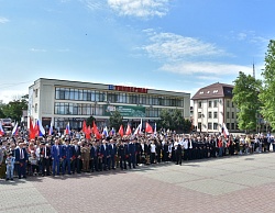 В г.Славянске-на-Кубани на Театральной площади состоялось торжественное построение, в котором приняли участие жители города и района, глава Славянского района Роман Синяговский, председатель Совета района Григорий Литовка, депутат ЗСК Денис Выпринцев, Славянский межрайонный прокурор Андрей Мищенко, начальник Отдела МВД России по Славянскому району Виктор Рассохин, руководитель Славянского межрайонного следственного отдела Максим Комоликов, председатель районного Совета ветеранов войны и труда Вячеслав Салмин, представители силовых структур, общественных и молодежных организаций, казаки.