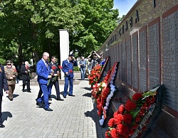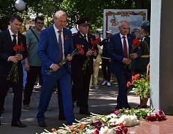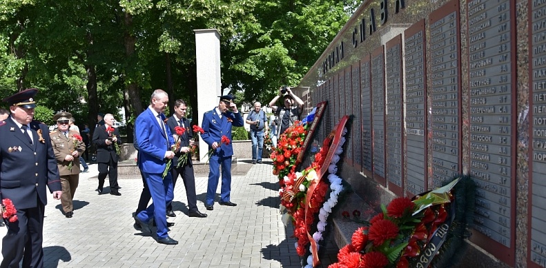 Память погибших почтили минутой молчания, а затем в парке им. 40-летия Победы торжественно возложили цветы и венки к мемориалу «Вечный огонь» и стене Памяти.