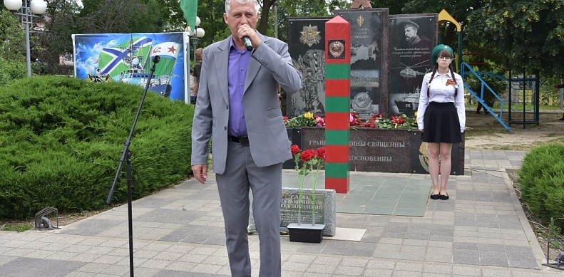 На торжественное мероприятие в сквере Пограничников были приглашены почетные гости: председатель Совета района Григорий Литовка и председатель Совета ветеранов пограничников ФСБ России в Славянском районе «Пограничное братство», подполковник запаса Олег Давков.