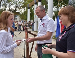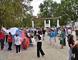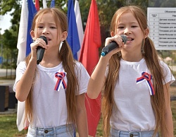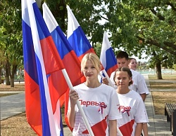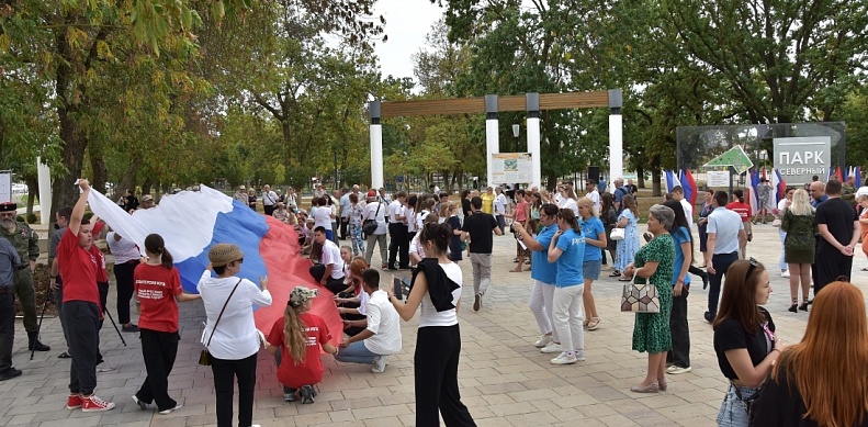В завершение мероприятия все присутствующие приняли участие в проведении флешмоба «Под российским флагом» и развернули 20-метровый российский триколор.