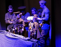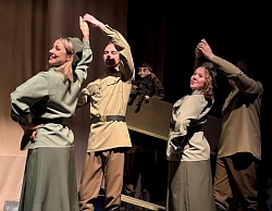 Спектакль «Рядовой Воробышек» — проникновенная история, в которой замысловато переплетаются исторические события прошлого и настоящего.