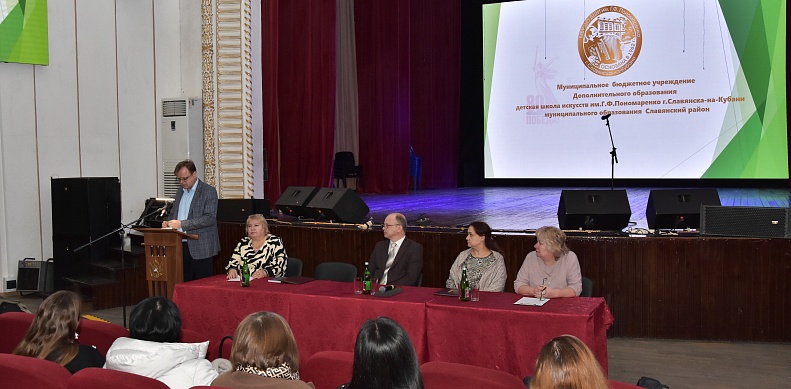 30 января в городском Доме культуры Славянска-на-Кубани состоялся районный педагогический совет работников детских школ искусств. Мероприятие прошло под руководством начальника управления культуры района Дмитрия Решмета и собрало педагогов учреждений дополнительного образования.