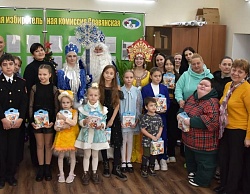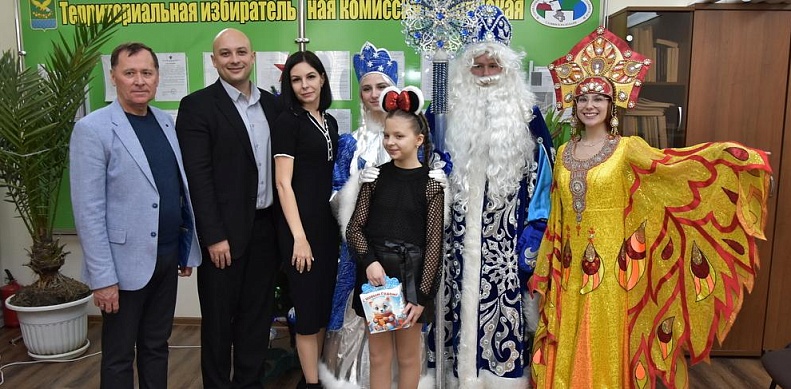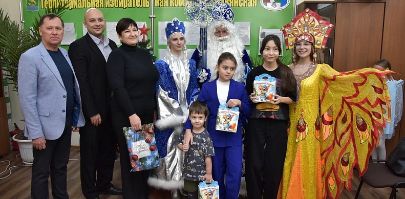 В преддверии Нового 2026 года территориальная избирательная комиссия Славянская провела Благотворительную акцию для детей членов участковых избирательных комиссий Славянского района, чьи родные участвуют в специальной военной операции. Дед Мороз (заместитель председателя ТИК Славянская Руслан Гогохиа) и Снегурочка (член ТИК Славянская Татьяна Чубаева) радостно встречали детей возле новогодних ёлок.