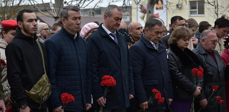 Почтить память соотечественников пришли неравнодушные жители города, участники специальной военной операции, представители общественных и молодежных организаций, казаки, студенты, школьники, сотрудники правоохранительных органов, глава Славянского района Роман Синяговский, председатель Совета района Григорий Литовка.