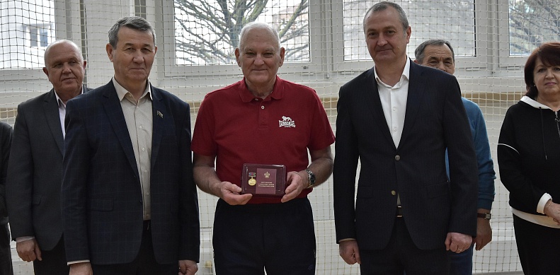 Значимым моментом мероприятия стало присвоение звания "Заслуженный работник физической культуры и спорта Краснодарского края" председателю Совета ветеранов спорта Славянского района Николаю Финяк. Роман Иванович вручил ему удостоверение и нагрудный знак, это стало признанием его вклада в развитие спорта в районе.