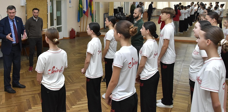После совещания Виктор Васильевич посетил шахматную школу «Белая ладья», где в большом зале проходят тренировки студии бально-спортивного танца "Академия" под руководством А.Н. Шишкина. В рамках мероприятия детям были вручены парадные костюмы, которые помогут им выглядеть нарядно на предстоящих соревнованиях.