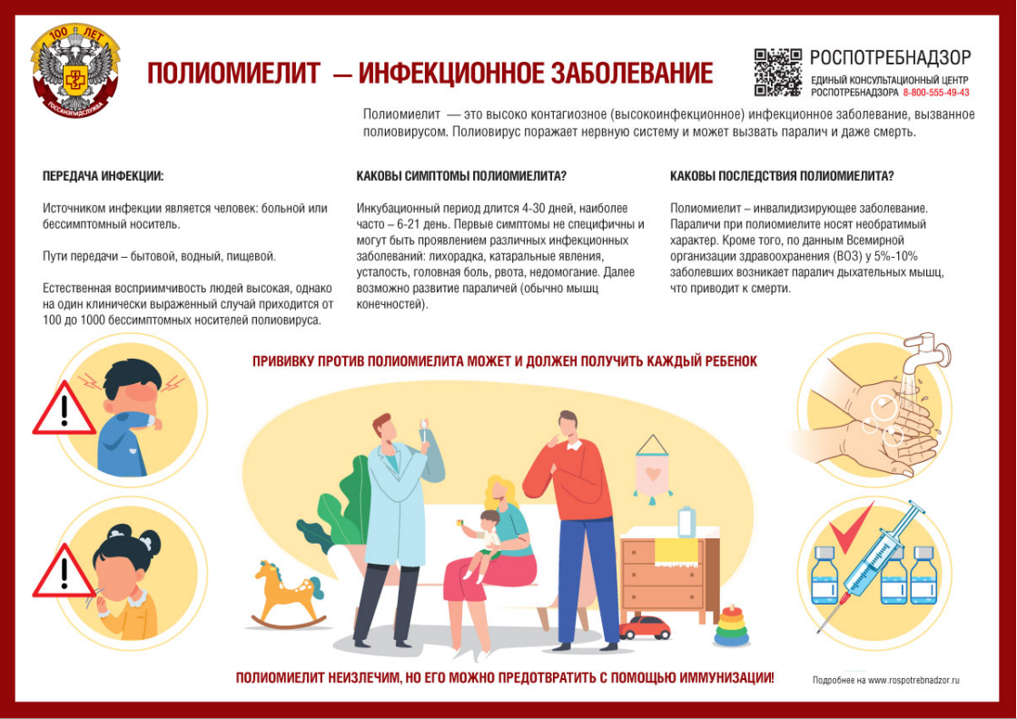 О Всемирном дне борьбы с полиомиелитомВо Всемирный день борьбы с полиомиелитом, 24 октября, Роспотребнадзор напоминает, что полиомиелит — это высококонтагиозное инфекционное заболевание, вызванное полиовирусом. Полиовирус поражает нервную систему и может вызвать паралич и даже смерть.