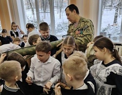 В рамках урока учащиеся также смогли ознакомиться с элементами экипировки современного бойца и посмотрели тематический видеоролик о героизме и стойкости соотечественников.