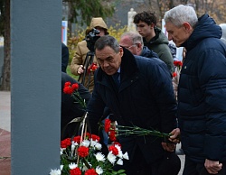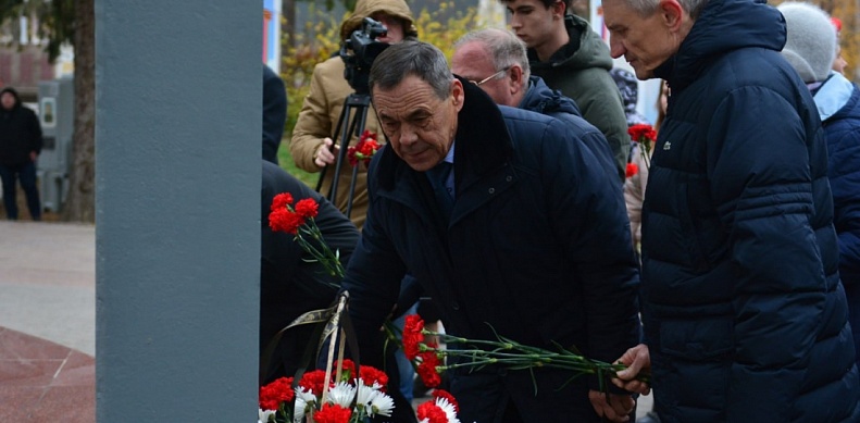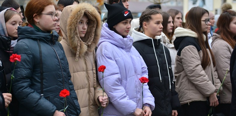 Минутой молчания собравшиеся почтили память тех, кто пал на полях сражений, и возложили цветы к Вечному огню.