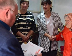 Гости зачитали имениннице персональное поздравление от Президента Российской Федерации Владимира Путина, вручили памятный подарок и пожелали крепкого здоровья, радости, чтобы каждый день был наполнен счастьем и только позитивными впечатлениями.