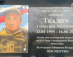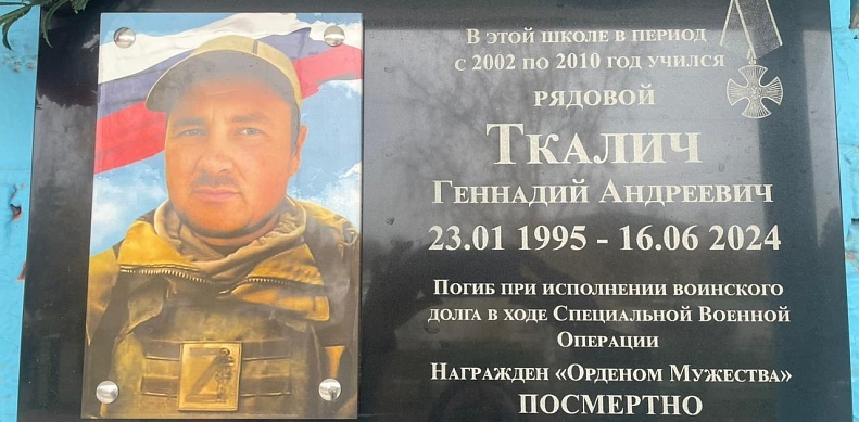 12 ноября в школе № 48 ст. Черноерковской открыли мемориальную доску в память об участнике специальной военной операции, выпускнике школы, кавалере ордена Мужества Ткаличе Г.А.