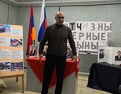 С приветственным словом к присутствующим обратился председатель армянского общества культуры и милосердия им. В.О. Папазяна Мелтонян А.Ю. Также выступили участники военной операции Шлыков В.В. и Окунев С.А.