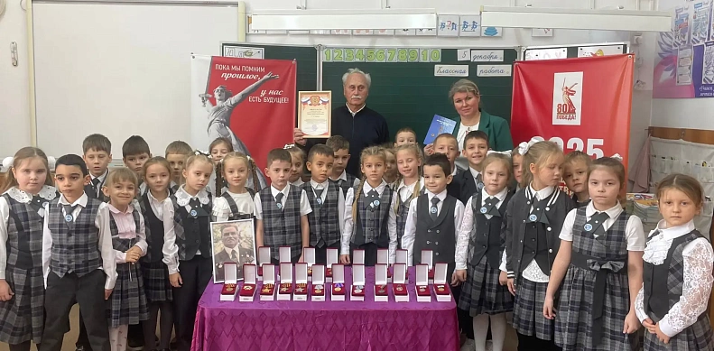 В 1 «А» классе Лицея № 4 состоялось значимое событие – торжественное открытие Парты Героя, посвящённой памяти полного кавалера Ордена Славы - Сорока Андрея Максимовича. На это мероприятие приехал его сын - Николай Андреевич Сорока, который поделился с учениками вдохновляющими историями о жизни и боевом пути своего отца.