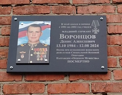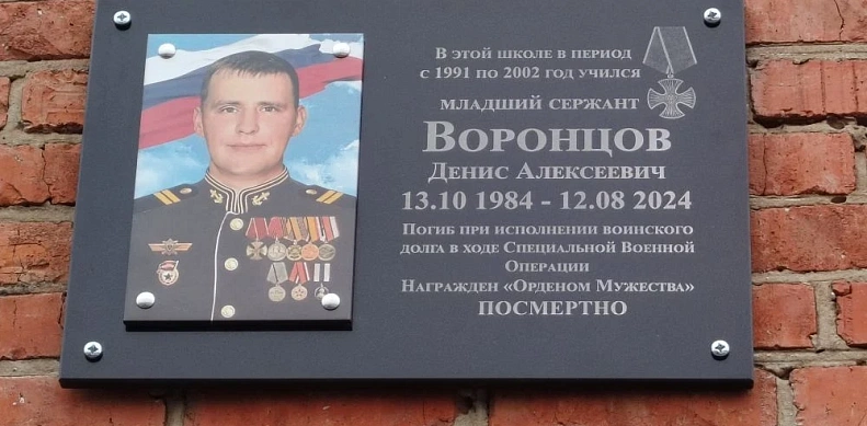 В школе № 6 пос. Совхозного прошла торжественная церемония открытия мемориальной доски в честь погибшего участника СВО, выпускника школы, кавалера ордена Мужества Воронцова Дениса Алексеевича.