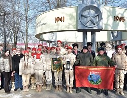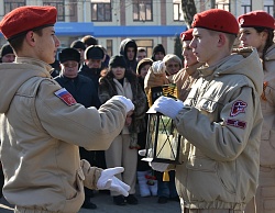 Воспитанники Всероссийского военно-патриотического общественного движения Славянского отделения «Юнармия» передали лампаду с негаснущим огнем Памяти воспитанникам Красноармейского отделения «Юнармия».