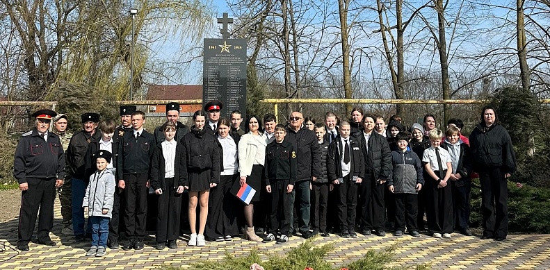 В памятном мероприятии приняли участие жители поселения, казаки Славянского городского Казачьего общества «Казачий Кордон» Славянского РКО, учителя и ученики школы № 11, сотрудники местной администрации.