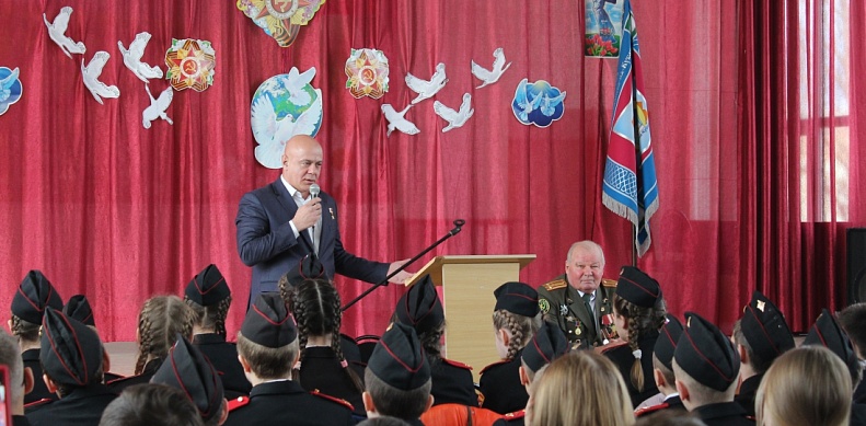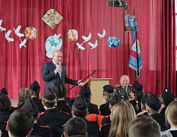 На встречу с ребятами были приглашены почётные гости - Герой Российской Федерации, майор запаса Эдуард Кушукович Цеев и председатель районного отделения всероссийской организации «Боевое братство», полковник запаса Александр Борисович Пантелеев.