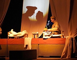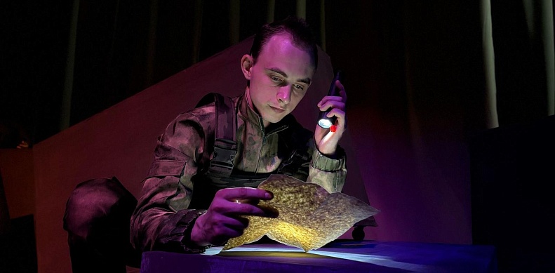 Спектакль «Рядовой Воробышек» — проникновенная история, в которой замысловато переплетаются исторические события прошлого и настоящего.
