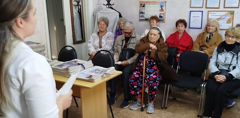 29 октября в Славянской районной организации ветеранов войны и труда заместитель начальника территориального отдела Управления Роспотребнадзора по Краснодарскому краю в Славянском, Красноармейском, Калининском районах Кротко Дарья, в рамках третьего этапа Лектория "Санпросвет" и реализации коммуникационной стратегии "Санпросвет" федерального проекта "Санитарный щит страны- безопасность для здоровья", провела лекцию о профилактике гриппа и ОРВИ для лиц старшего поколения.
