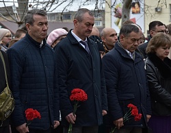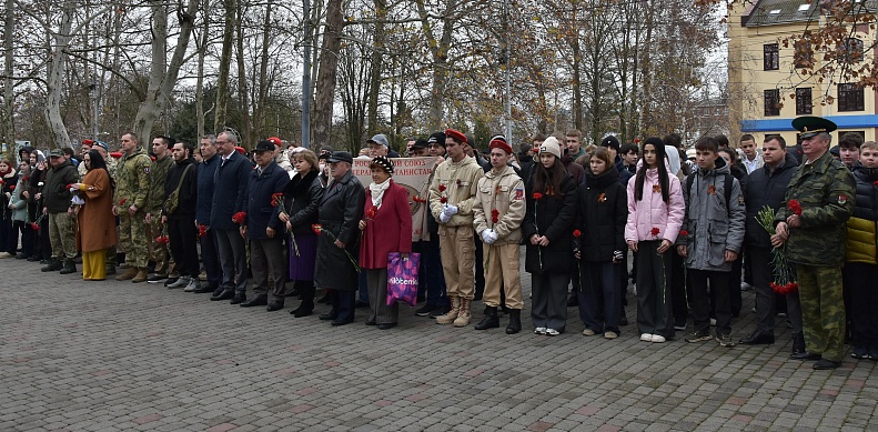 Почтить память соотечественников пришли неравнодушные жители города, участники специальной военной операции, представители общественных и молодежных организаций, казаки, студенты, школьники, сотрудники правоохранительных органов, глава Славянского района Роман Синяговский, председатель Совета района Григорий Литовка.