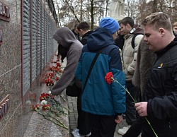 Мероприятие завершилось минутой молчания и возложением цветов к Вечному огню и воинским мемориалам в Аллее Памяти парка «40 лет Победы».