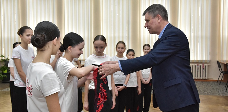 После совещания Виктор Васильевич посетил шахматную школу «Белая ладья», где в большом зале проходят тренировки студии бально-спортивного танца "Академия" под руководством А.Н. Шишкина. В рамках мероприятия детям были вручены парадные костюмы, которые помогут им выглядеть нарядно на предстоящих соревнованиях.
