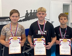 2 место – Шухлин Илья, в/к 49 кг (тренер-преподаватель-Шухлин Д.В.). Алексеев Алексей, в/к 57 кг (тренер-преподаватель-Курячий Ю.Н.);