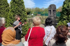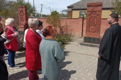 Конечный пункт экскурсии - армянское общество культуры и милосердия имени Валерия Папазяна. Его председатель Айк Мелтонян рассказал об истории установленных на территории хачкаров, каменных стел с резным изображением креста, посвященных значимым событиям в жизни армянского народа.