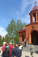 В Забойском нас встречает заведующая библиотекой Ирина Завгородняя, которая знает все о своей малой Родине. Ее экскурсии в храм святого благоверного Александра Невского позавидует любой специалист. Ирина Ивановна поведала гостям об особенностях проекта, необыкновенной акустике, оригинальных иконах Павла Игнатьева, уникальной черно-белой росписи, истории каждой иконы, перенесенной сюда из старой церкви, колоколах из бронзы и их именах, необычном освещении храма по утрам, а также о человеке, который претворил в жизнь мечту забойчан о новом храме, - меценате, уроженце Забойского Льве Федоренко.