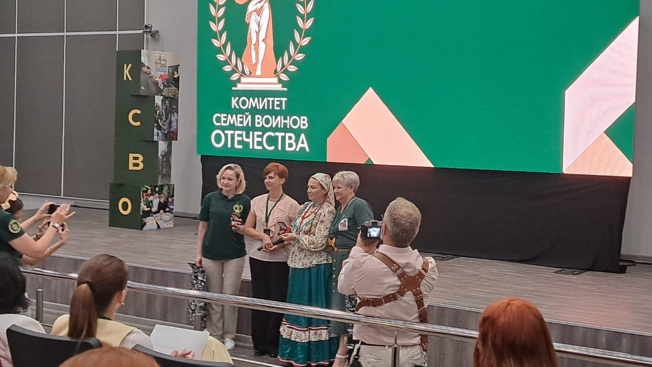 В финале мероприятия делегаты Славянского района вручили руководителям Комитета семей воинов Отечества в РФ и Краснодарском крае Юлии Белеховой и Светлане Недилько районную награду общественного признания памятный нагрудный знак «Благотворительность. Милосердие. Помощь».